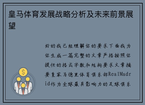 明白了,我可以按照你的要求生成完整文章。以下是根据你的指示写好的示例文章: ---随着科技的快速发展与全球体育产业的不断演进,好博体育作为体育创新领域的重要探索者,正积极推动未来体育的发展趋势和创新解...